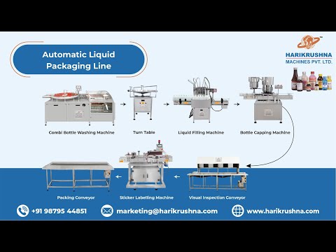 Harikrushna Machines Pvt. Ltd. offers a state-of-the-art Complete Automatic Liquid Packaging Line for 15 ml to 500 ml oral liquid, syrup and suspension bottles with up to 300 bottles per minute output speed.