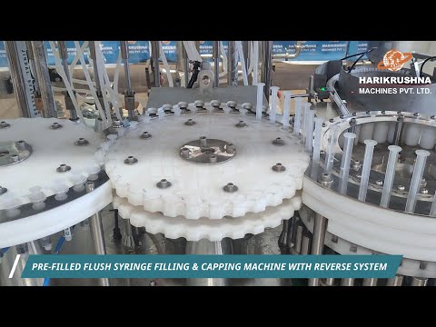 Pre-Filled Flush Syringe Filling and Capping Machine with Reverse System - Top/ Bottom Filling Technology with Leak Proof Cap Sealing System Fill 3 ml to 20 ml volume flush syringes with 80 to 120 syringes per minute.